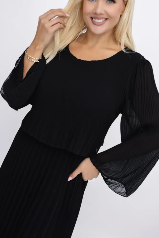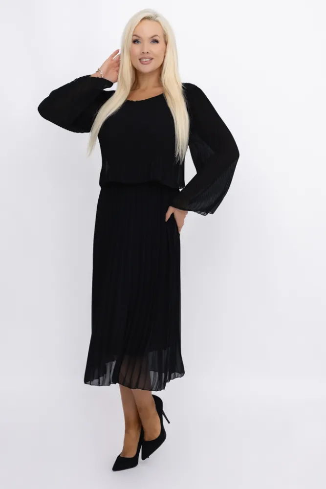 Włoski Czarna plisowana Sukienka szyfonowa REVERTI