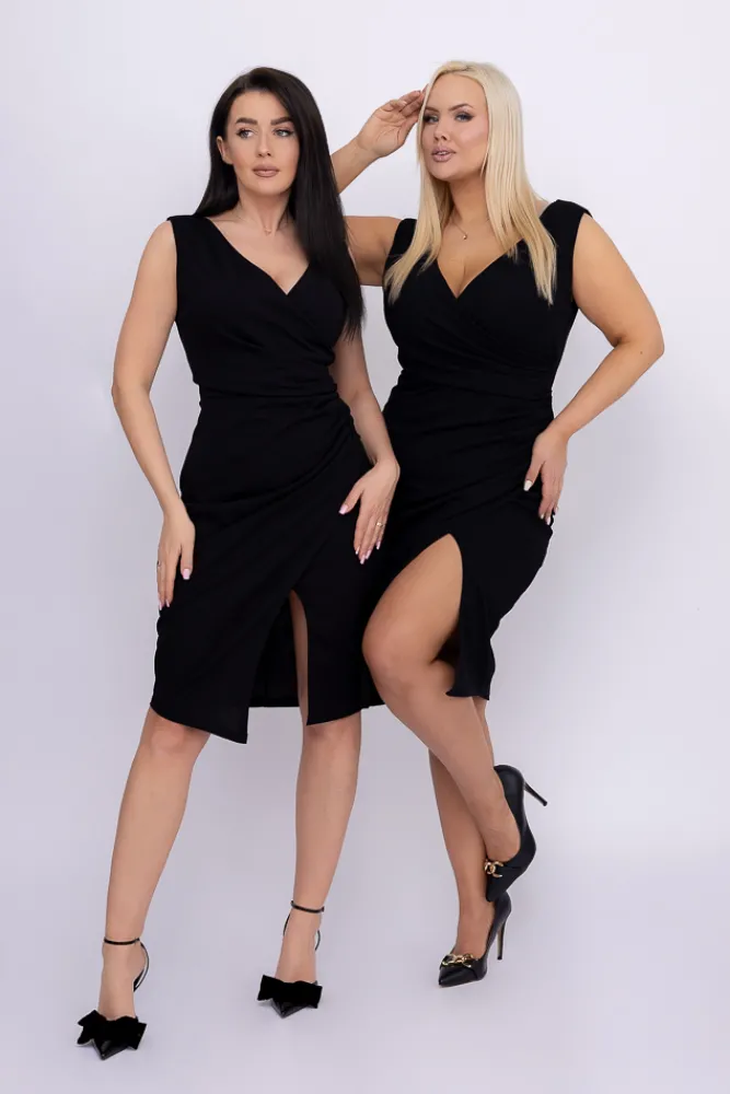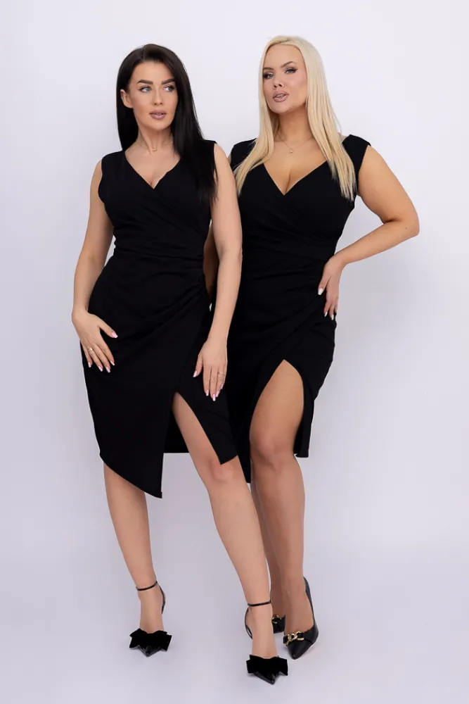 Włoski Czarna Sukienka kopertowa KENTI
