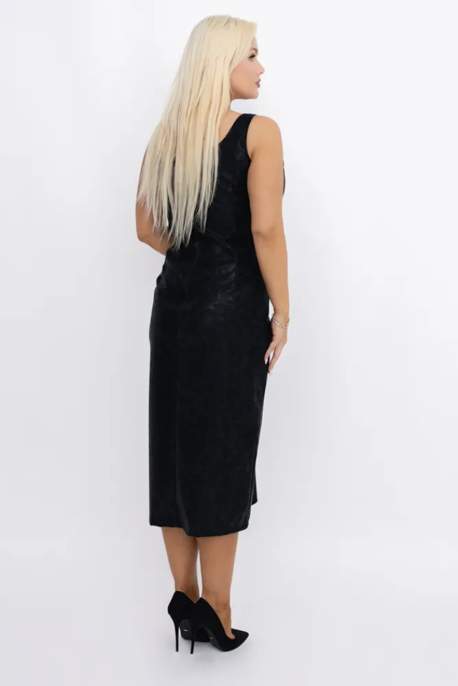 Włoski Czarna Sukienka skórzana FARIGA