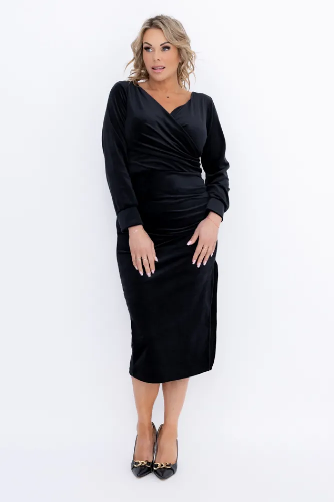 Włoski Czarna Sukienka welurowa BAKARIA