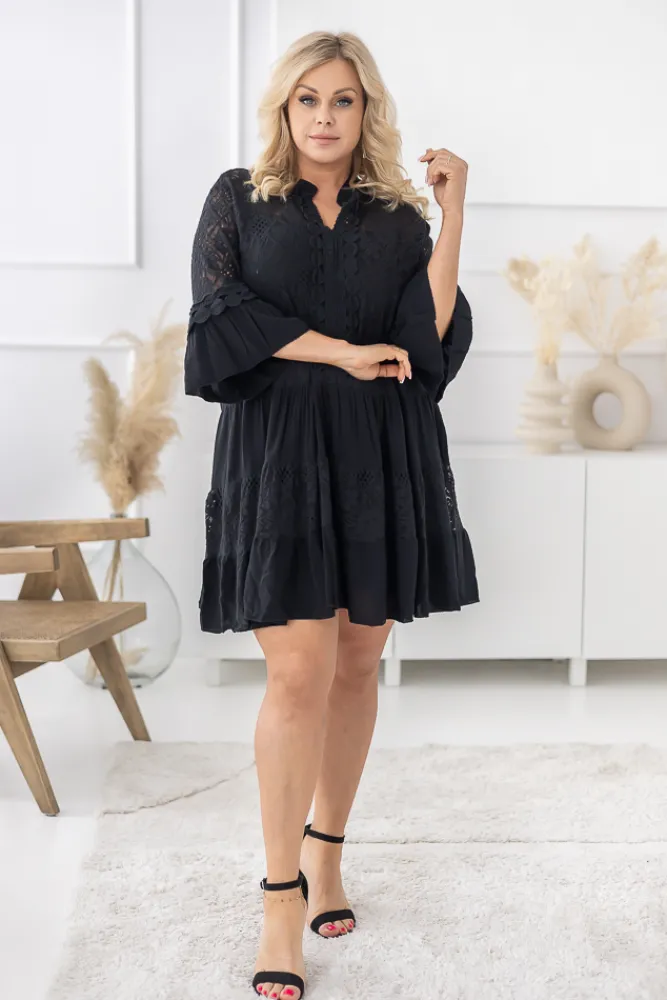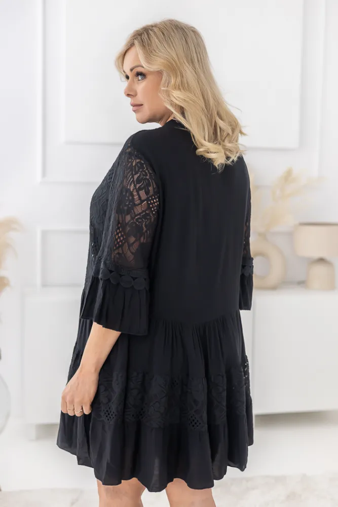 Włoski Czarna Sukienka z haftem TULUZI