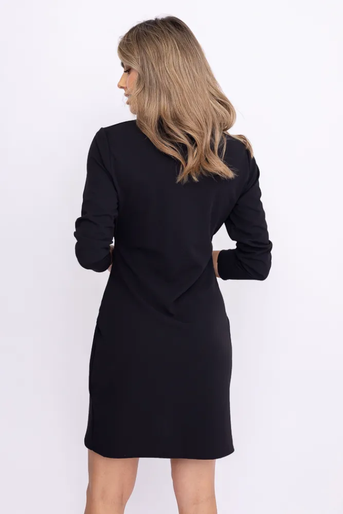 Włoski Czarna Sukienka z marszczeniem KAMPOZI