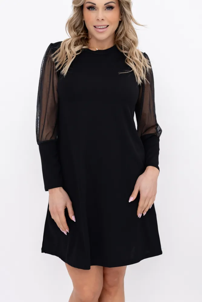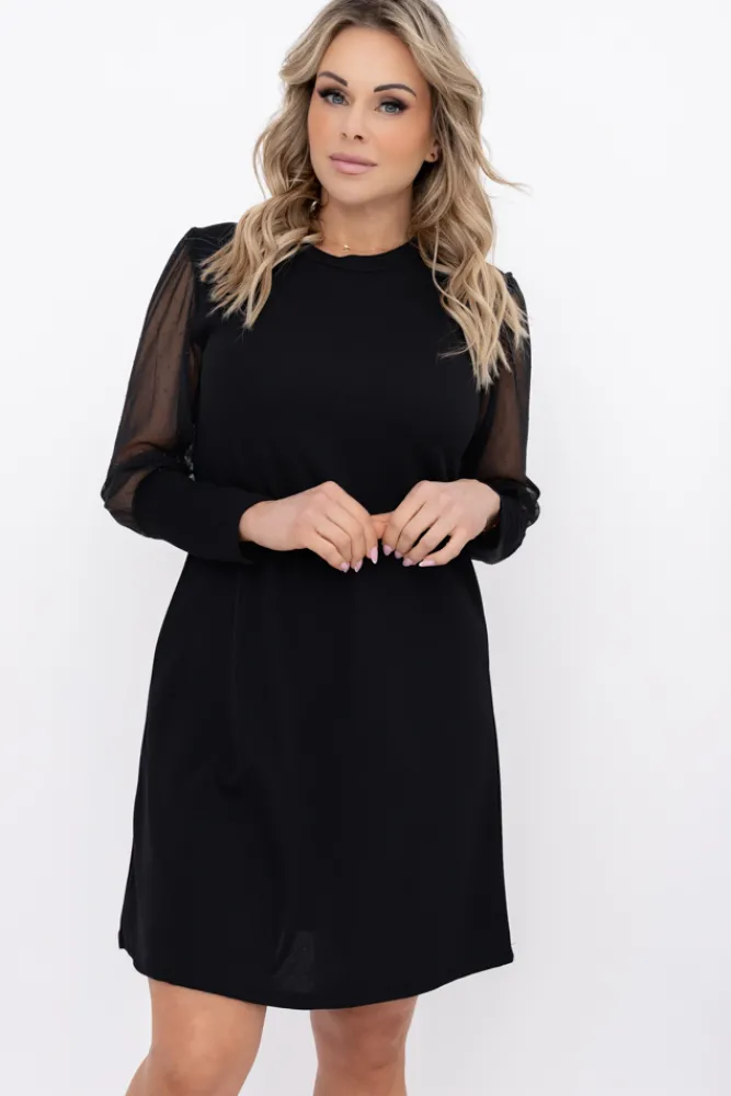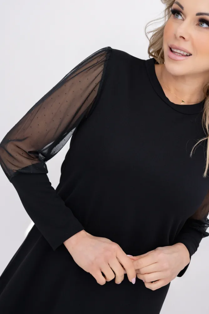 Włoski Czarna Sukienka z prześwitującymi rękawami AMBROZI Wzór 2