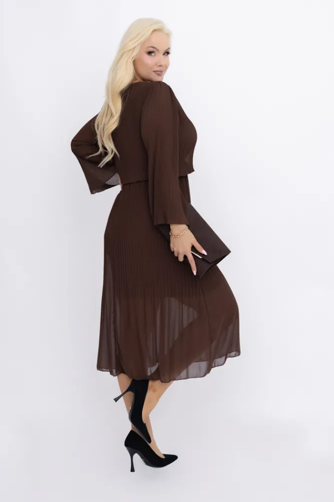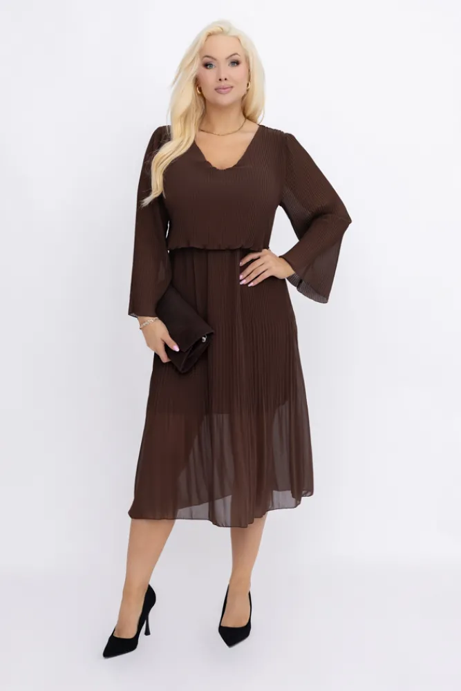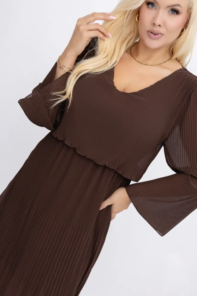 Włoski Czekoladowa Sukienka szyfonowa SIMENI