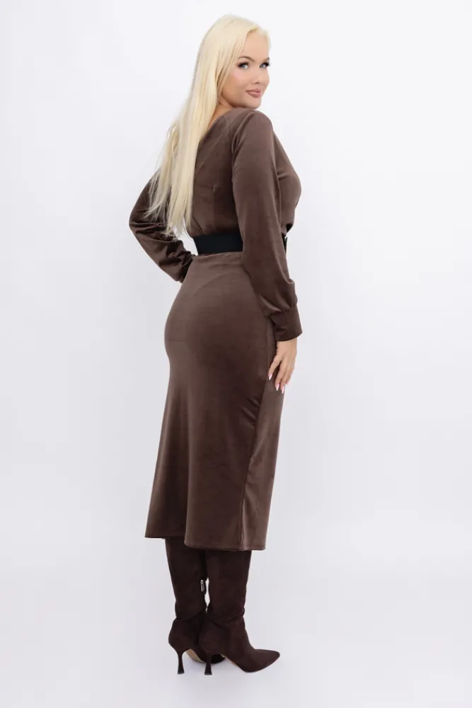 Włoski Czekoladowa Sukienka welurowa BAKARIA