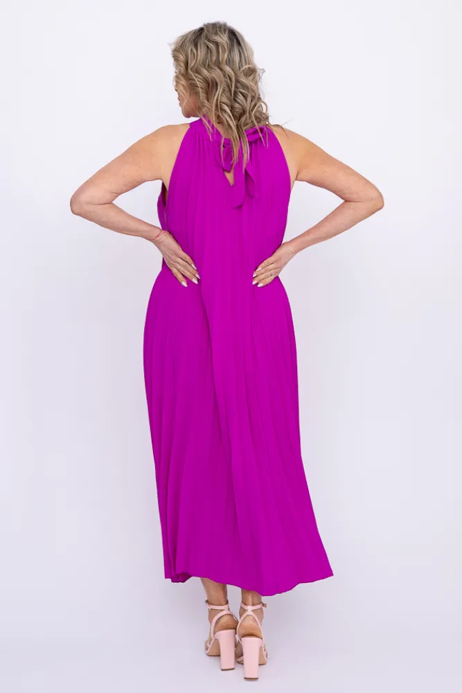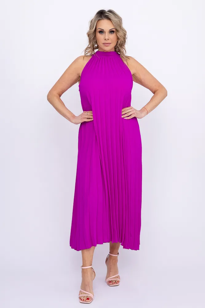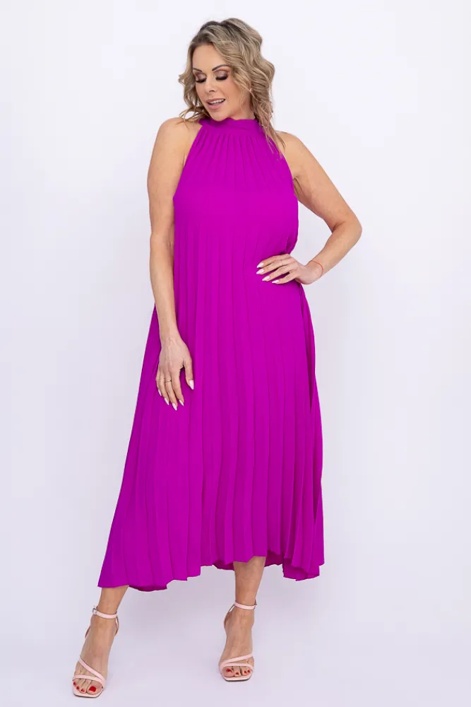 Włoski Fioletowa Sukienka plisowana JAKARTA