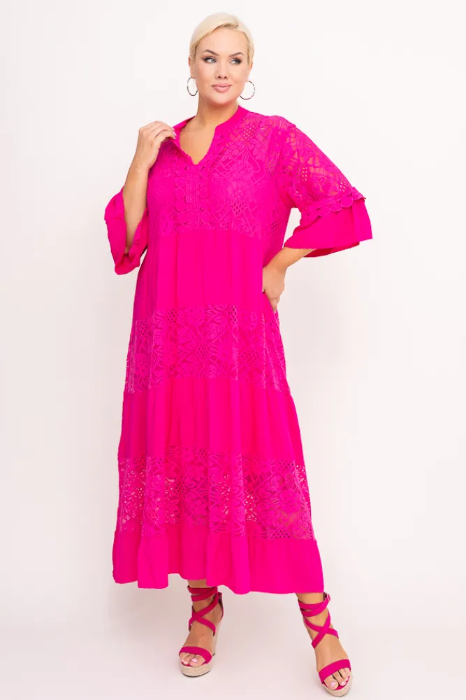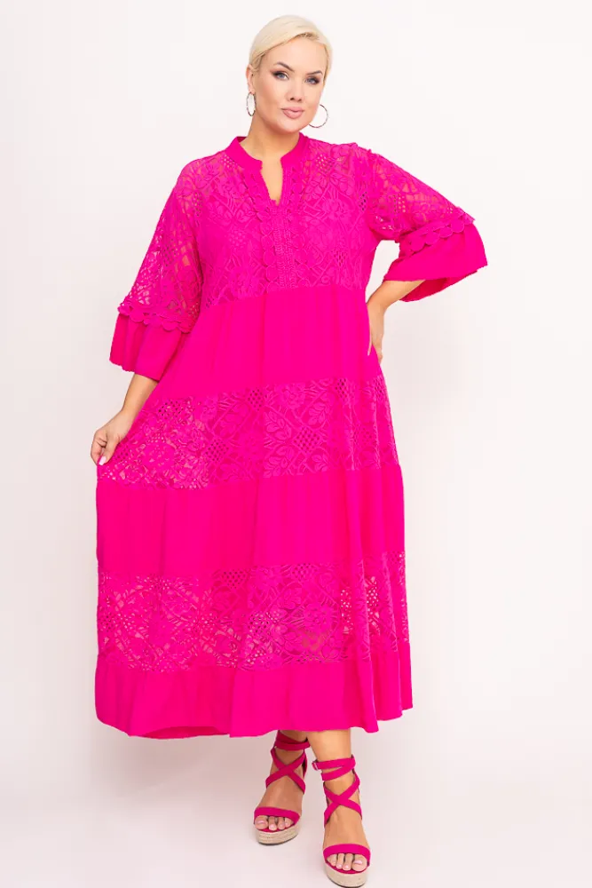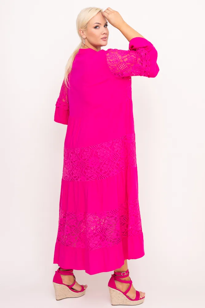 Włoski Fuksjowa Sukienka z haftem VERDINA