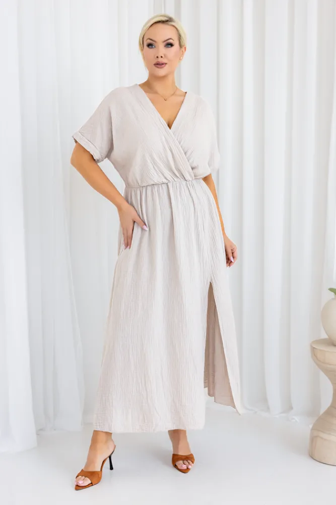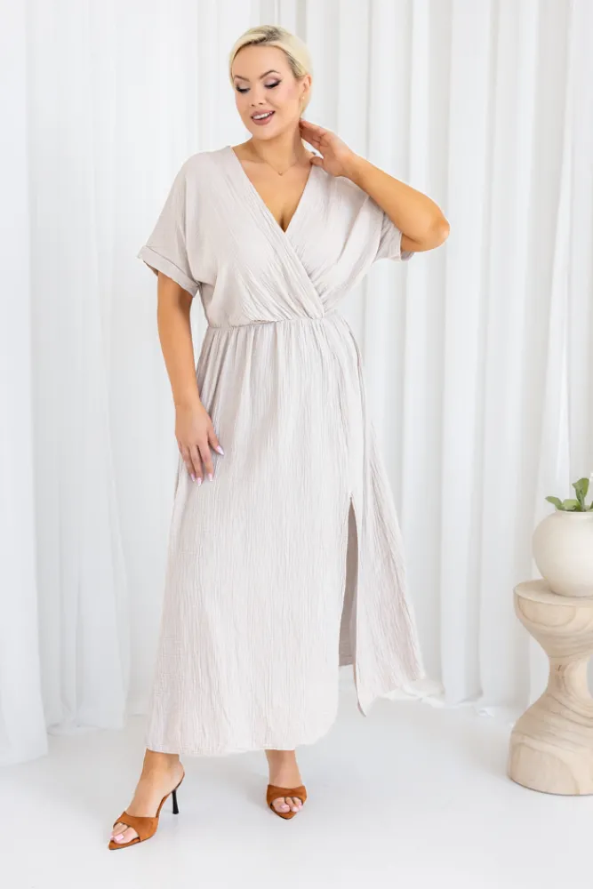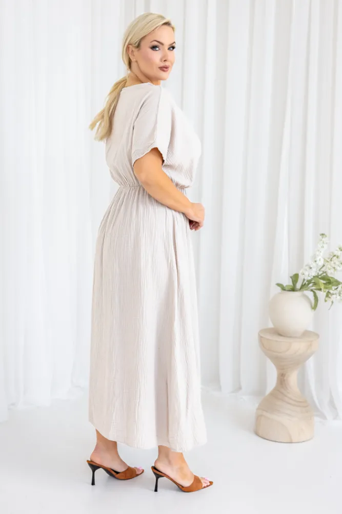 Włoski Jasnobeżowa Sukienka muślinowa SHEGENI