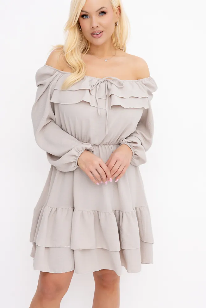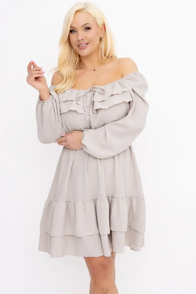 Włoski Jasnobeżowa Sukienka z falbanami KARIENTO