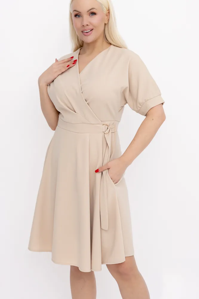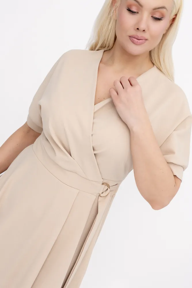 Włoski Jasnobeżowa Sukienka z wiązaniem DARKIA