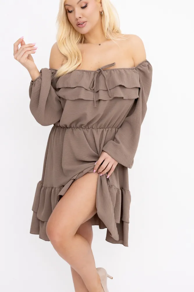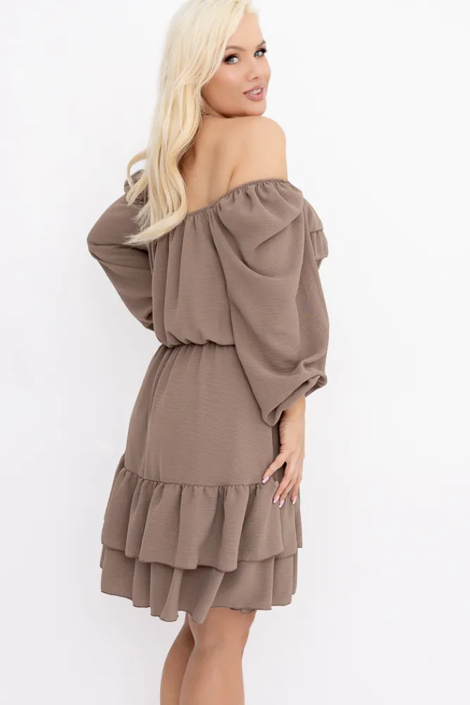 Włoski Jasnobrązowa Sukienka z falbanami KARIENTO