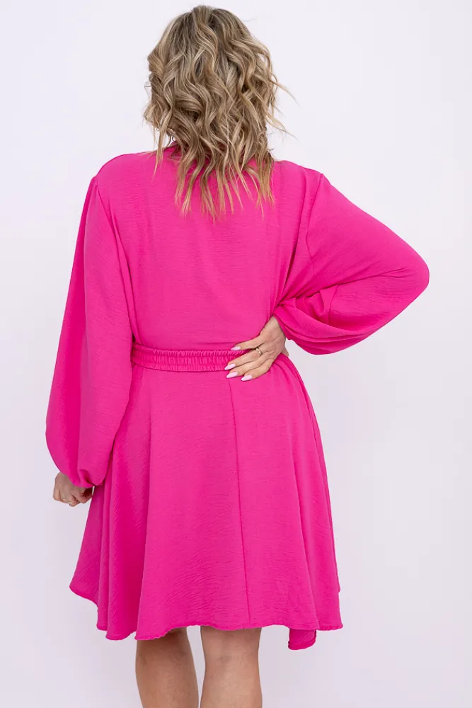 Włoski Jasnoróżowa Sukienka koszulowa z paskiem DEPERI
