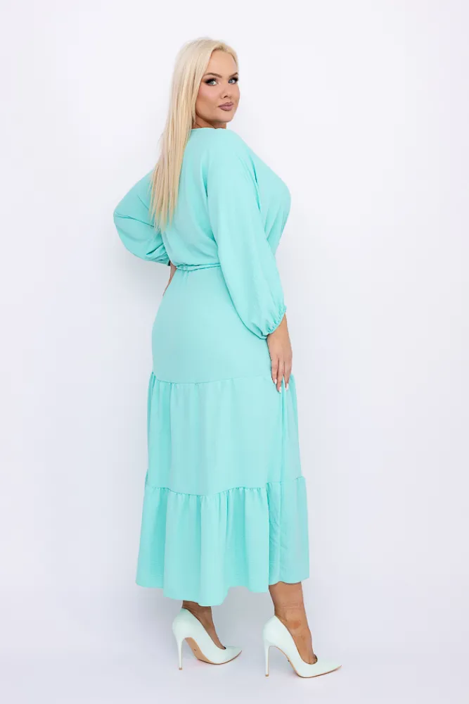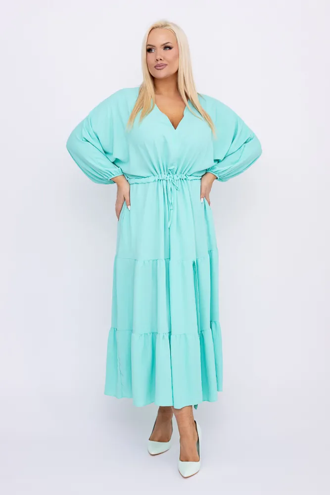 Włoski Miętowa Sukienka z rozcięciem TERUMI