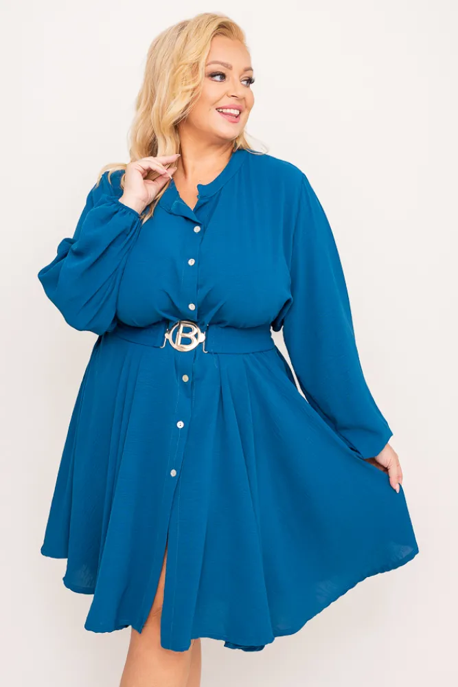 Włoski Morska Sukienka koszulowa z paskiem DEPERI