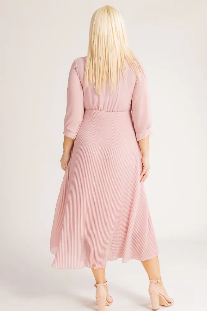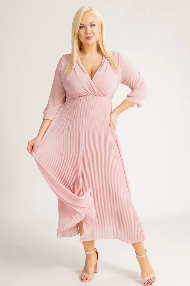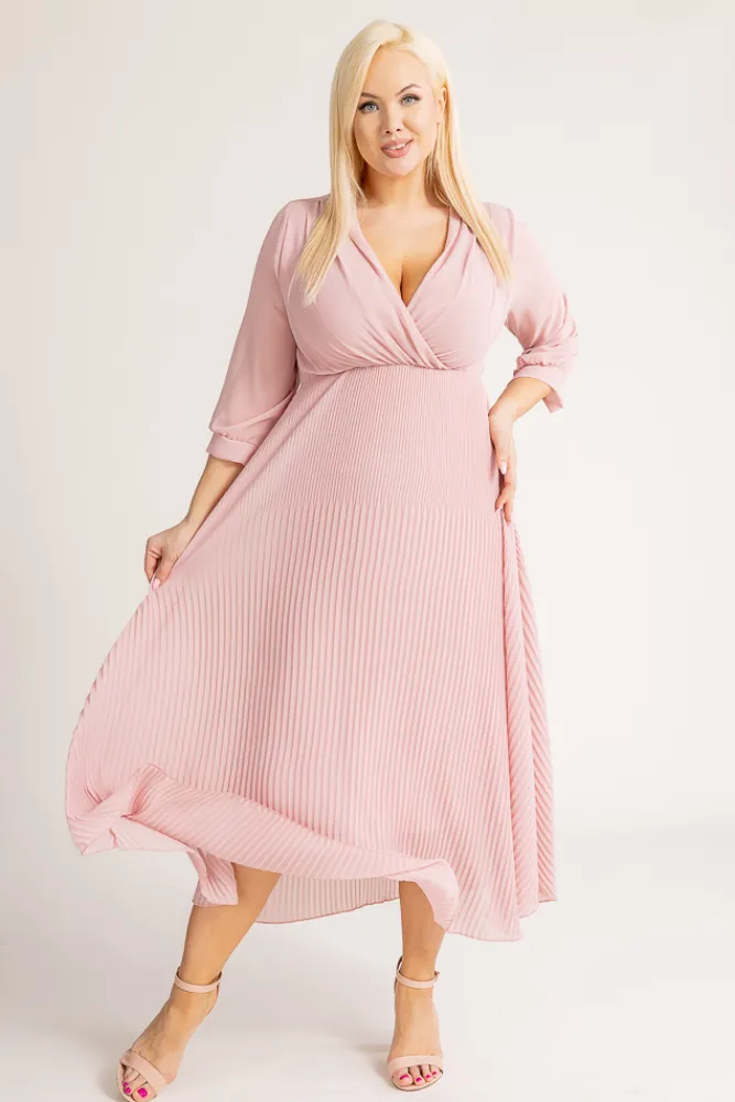 Włoski Pudroworóżowa Sukienka plisowana KEMELI