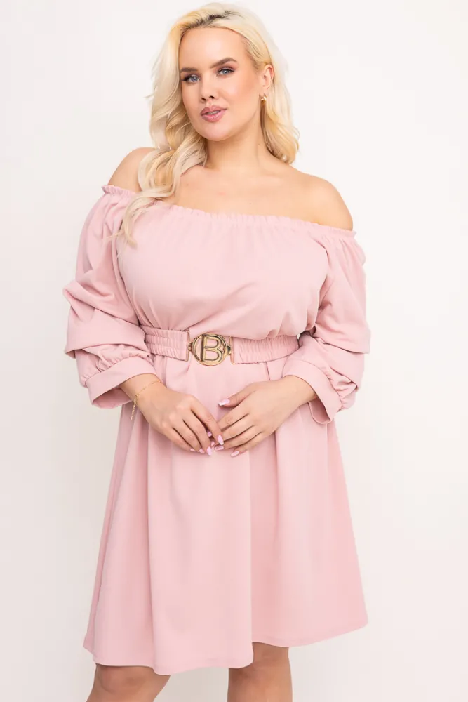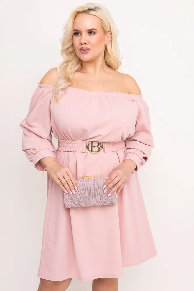 Włoski Pudroworóżowa Sukienka z paskiem VOUGI