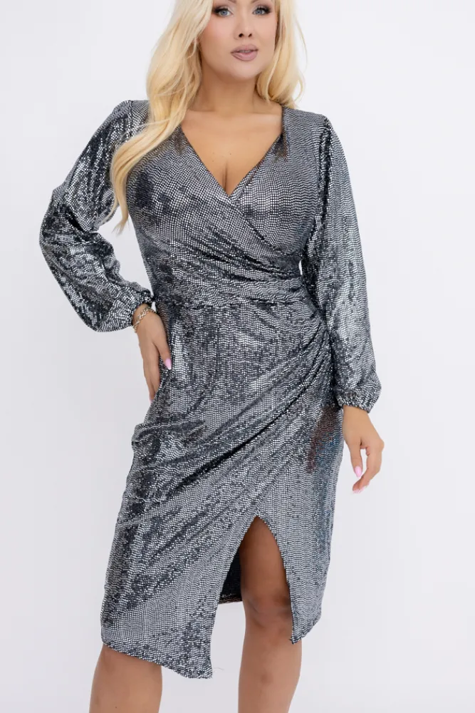 Włoski Srebrna Sukienka błyszcząca KESSI