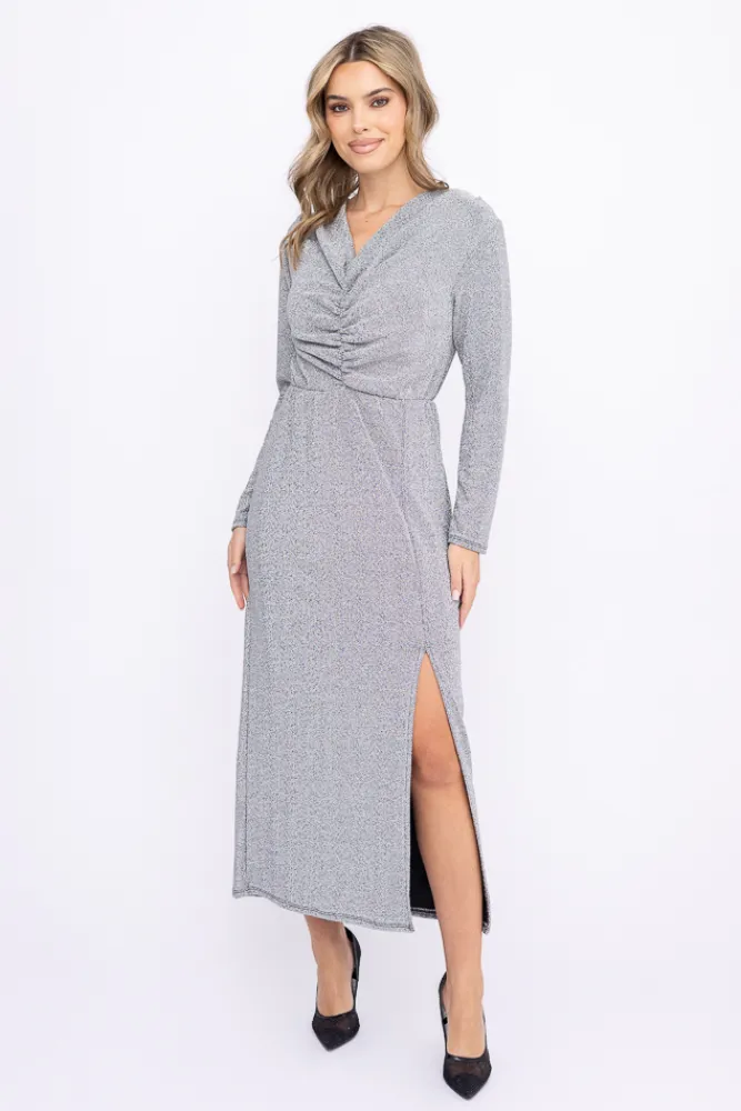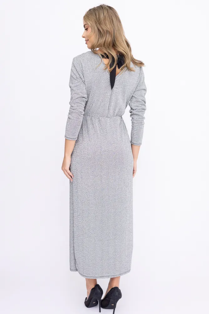 Włoski Srebrna Sukienka błyszcząca z kokardką KLIMENO