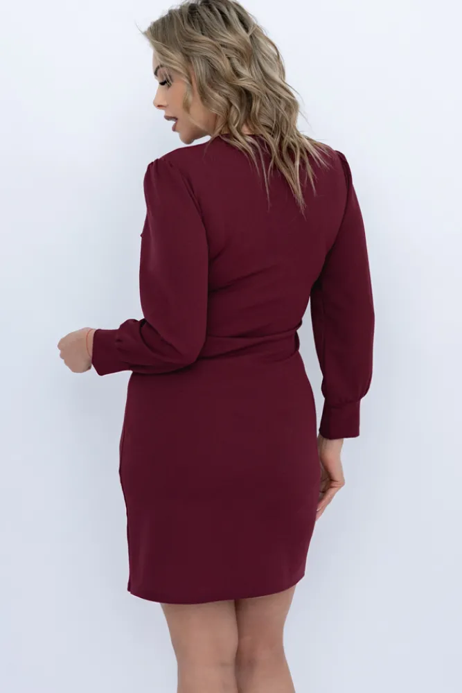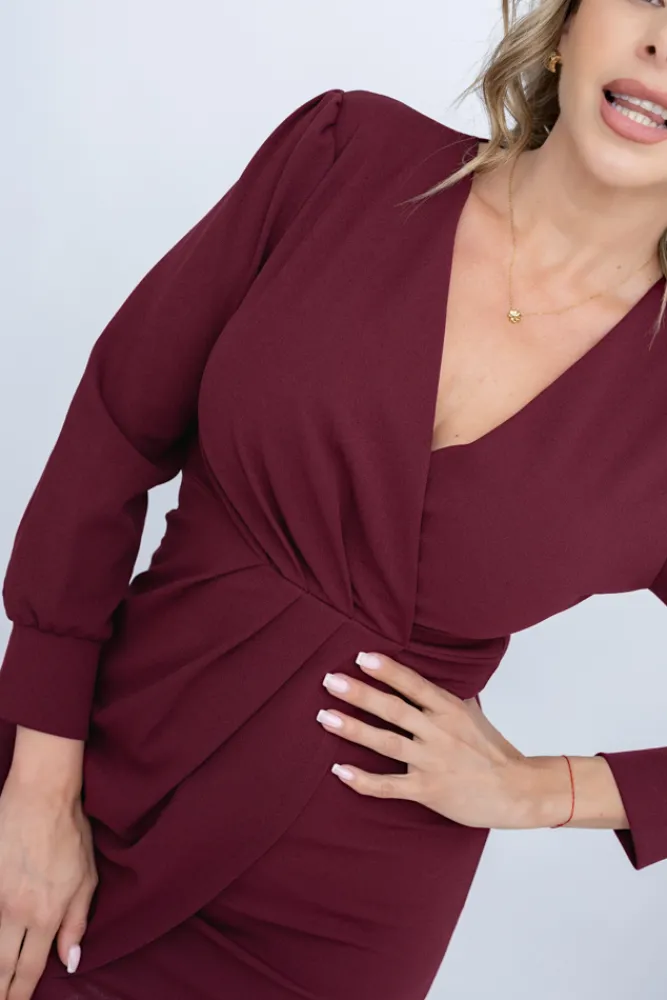 Włoski Wiśniowa Sukienka z marszczeniem VISTERO