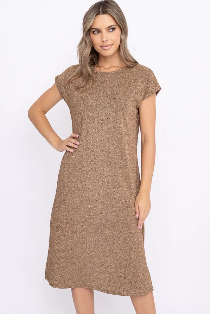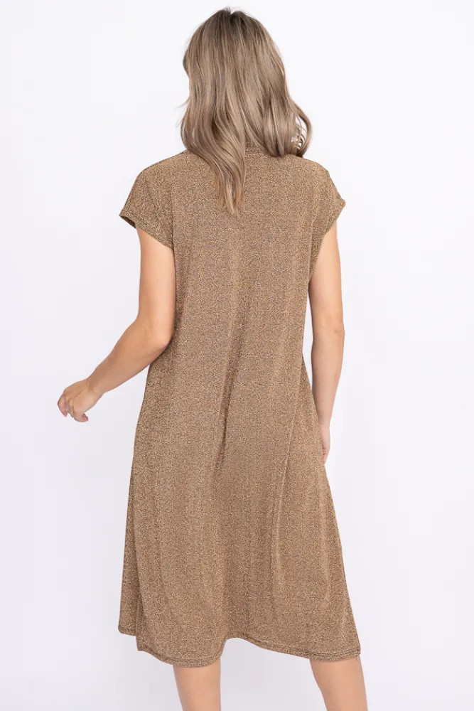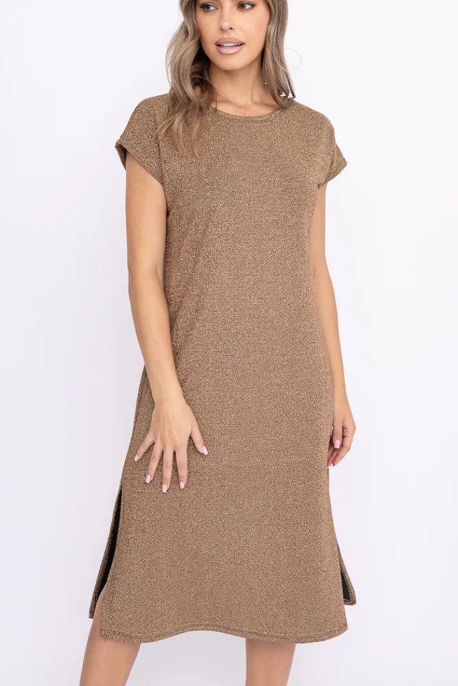 Włoski Złota Sukienka Błyszcząca GEVINI